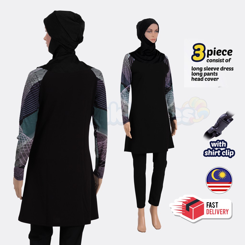 Ready Stock Women Muslimah Swimming Suit Swimwear Baju Renang Abstract Design Shopee Malaysia