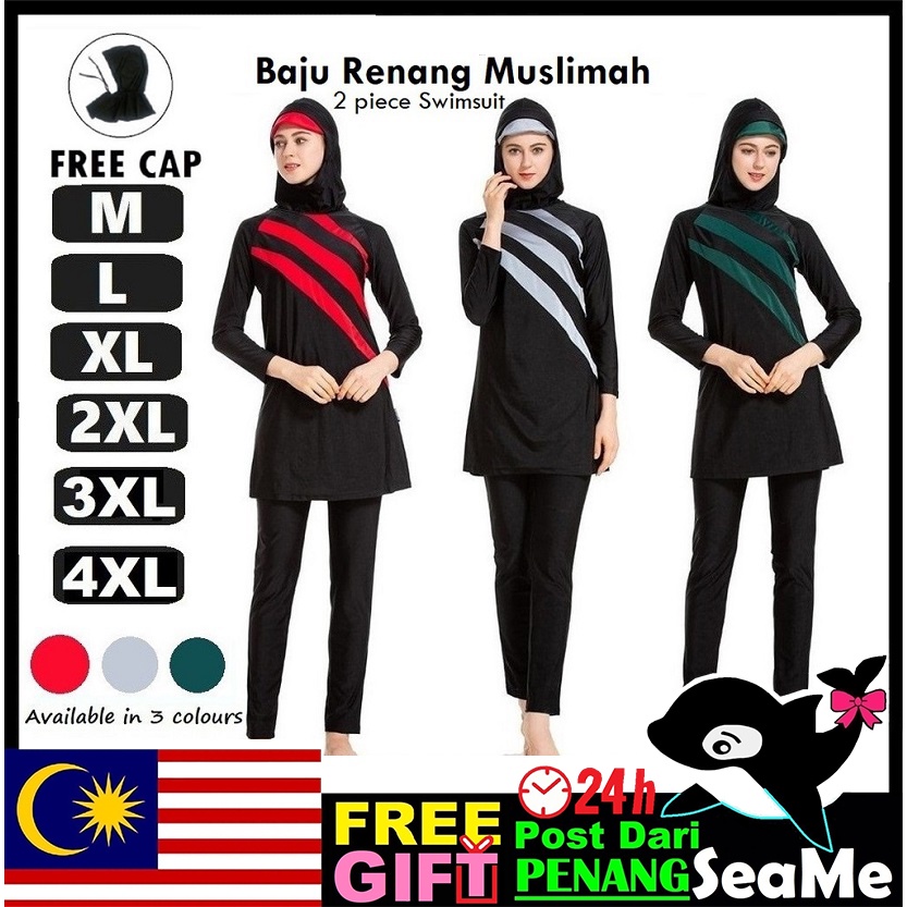 Sea Me Pos Dari Penang Women Swimwear Modest Hijab Muslimah Swimming Suit Long Sleeve Sport Swimwear Baju Mandi Shopee Malaysia